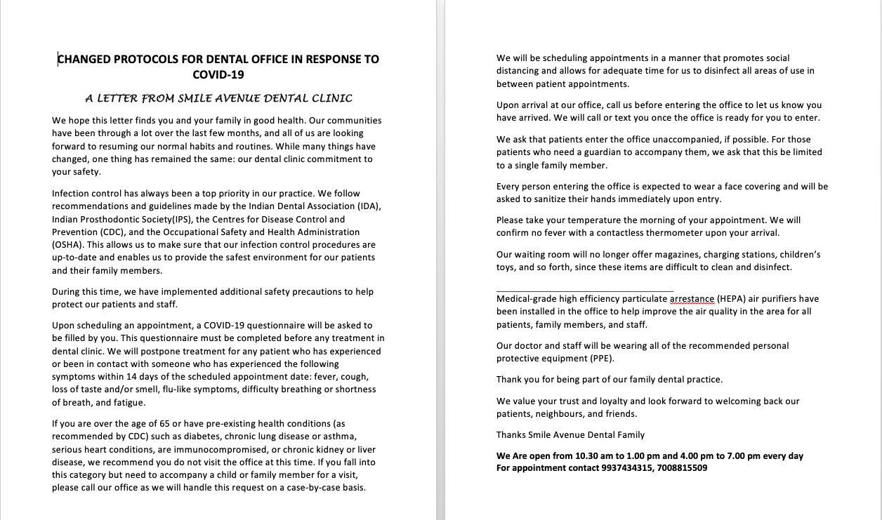 Before coming to dental clinic